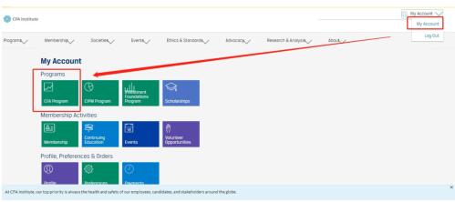 1.进入协会官网,登陆您的协会账号,在 my account 里选择 CFA Program